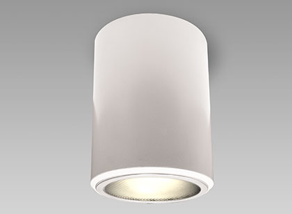 Single lamp, LED, surface mounted accent light, 4" housing and optional glass diffuser. Cylindrical junction box can be either recessed or surface mounted. Modular cylindrical structure opens up the possibilities of better design.